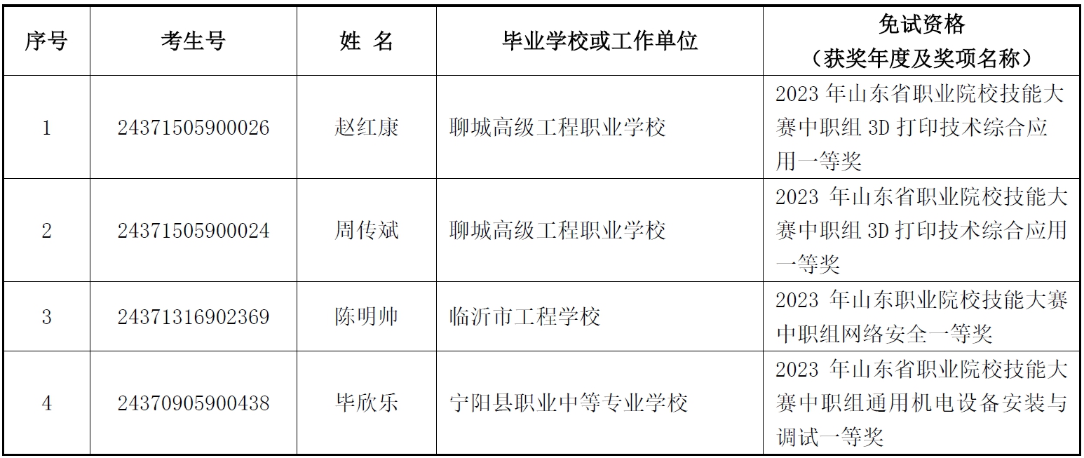 根据山东省教育厅《山东省教育厅关于做好2024年高职(专科)单独考试招生和综合评价招生工作的通知》(鲁教学函〔2023〕28 号)《伟德betvlctor1949源于英国2024年高职(专科)单独考试招生和综合评价招生章程》要求,按照考生申报、学校初审、教育主管部门最终审核流程,伟德初审通过单独考试招生免试考生4人,现予以公示。公示结束后将免试考生相关材料报送上级教育主管部门,最终符合免试资格考生名单以上级教育主管部门审核为准。